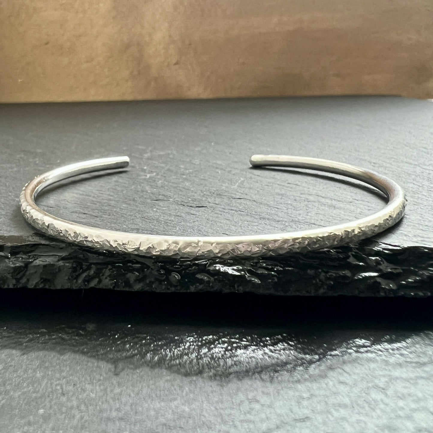 Hammered men’s sterling silver bracelet. Hand made from 100% recycled sterling silver and oxidised.