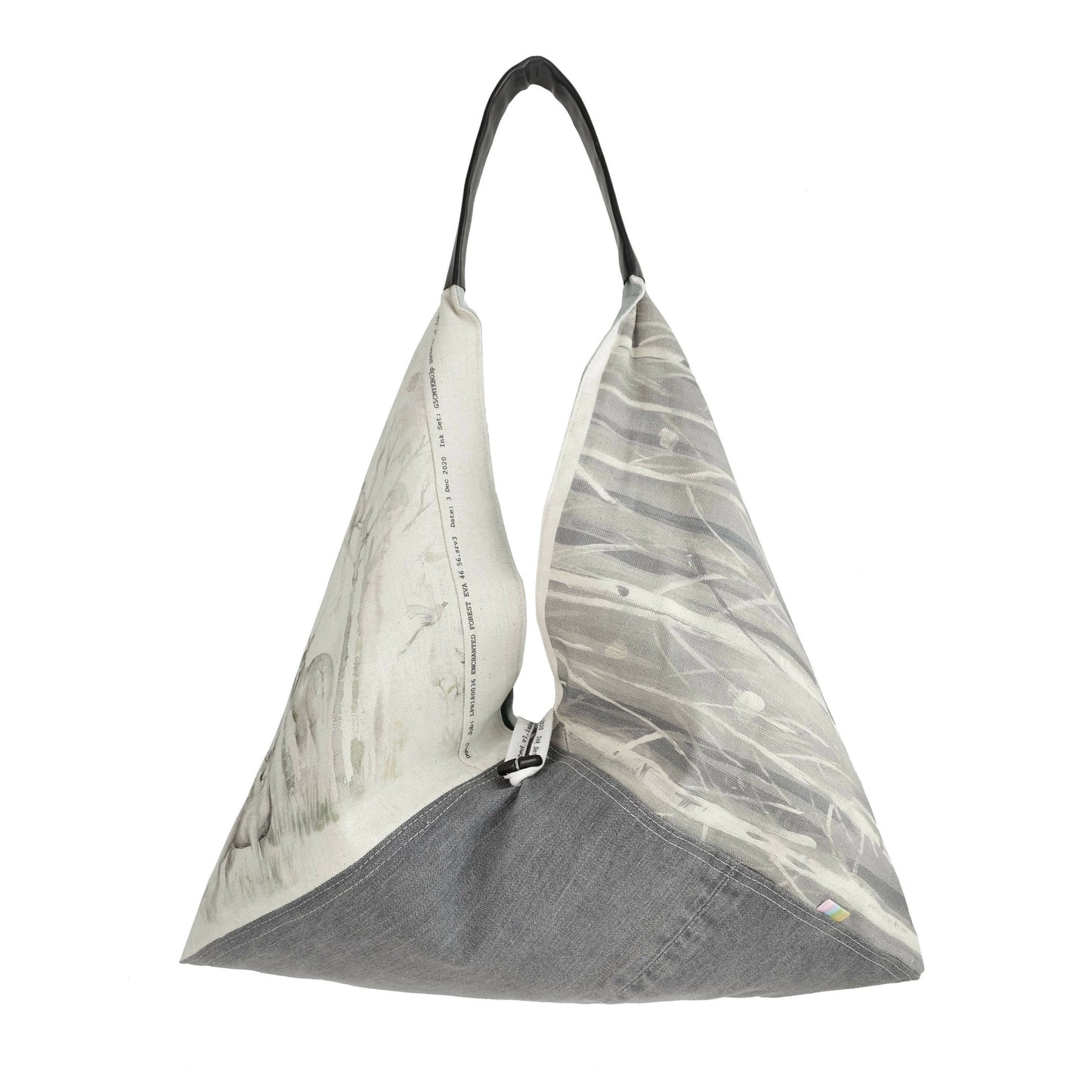 The Japanese inspired, ORIGAMI bag is uniquely created from denim jeans and linen.