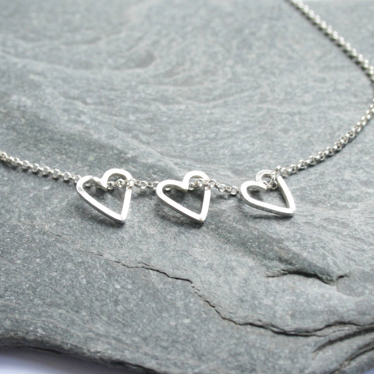 Each heart measures approximately 10mm in diameter and the chain length can be chosen. If you would like a different number of hearts on the chain please contact me to arrange this.