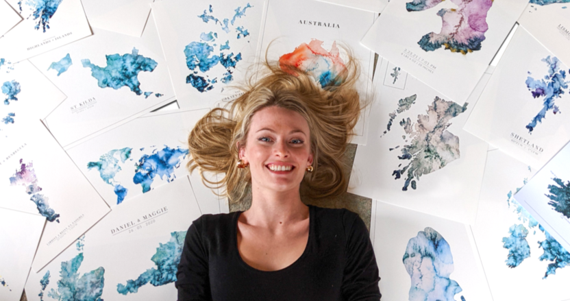Hi! I’m Eilidh, and I create watercolour maps that aim to evoke the feeling of ‘home’ by setting your most cherished locations in glistening hand-painted gold and pair with custom titles, for a truly bespoke piece of art.