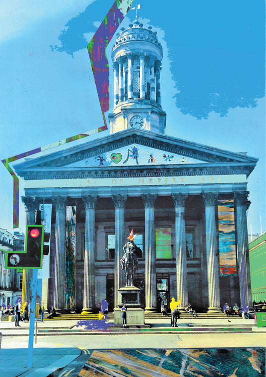 Glasgow Postage Stamps Art Print. Subway, Wellington, George Square and Glasgow Central Clock.