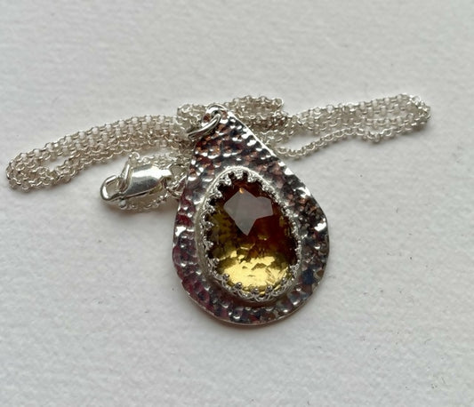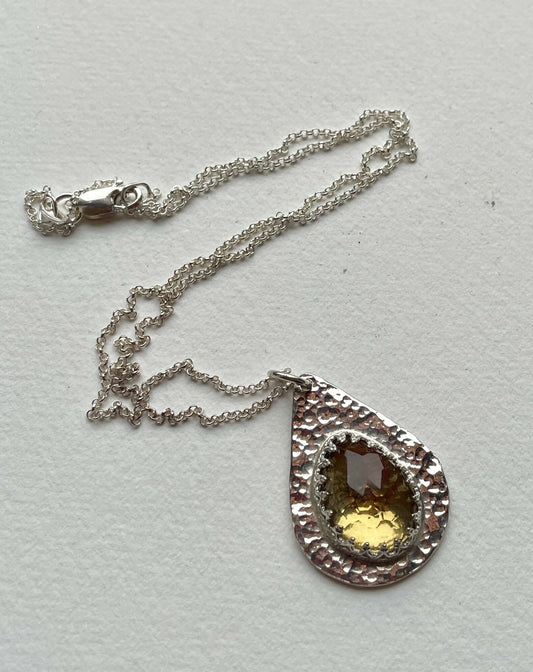 Handmade recycled sterling silver pendant with rose cut amethyst