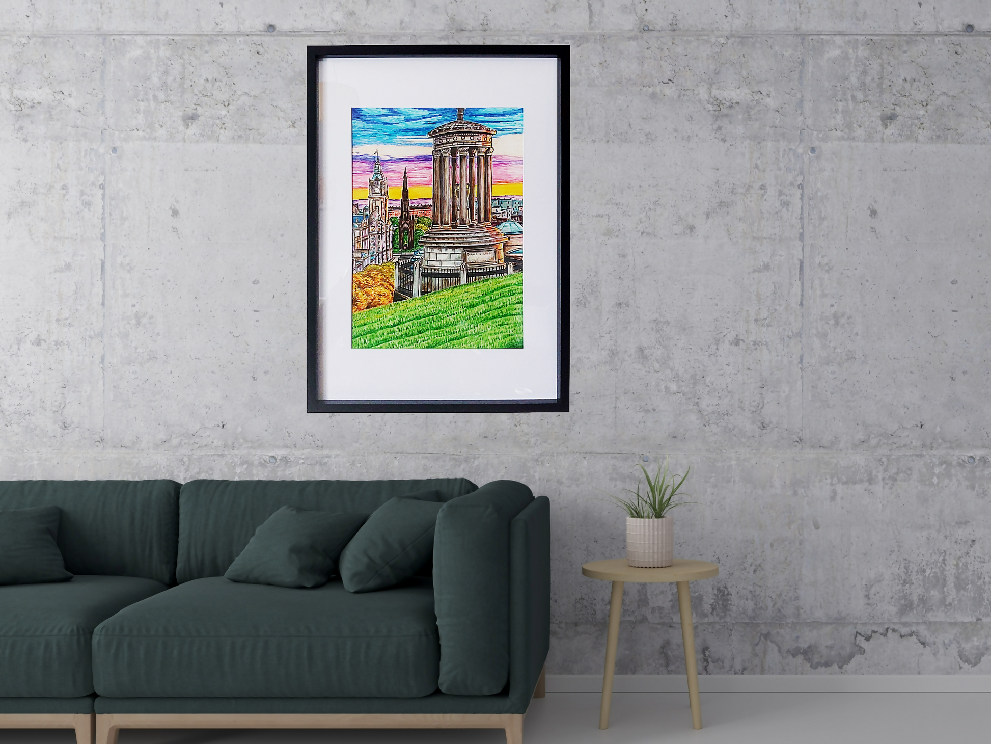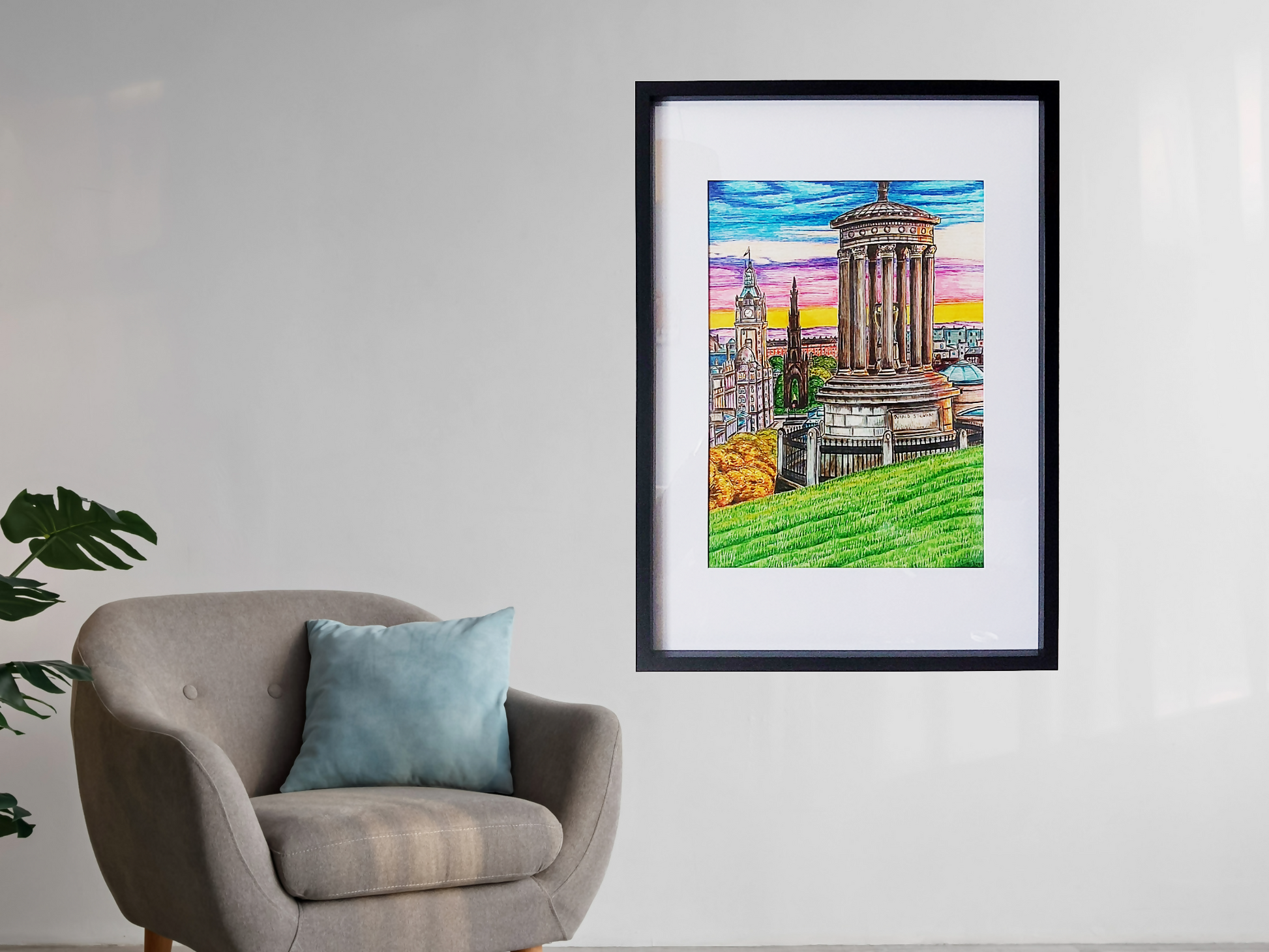 A3 Original Edinburgh Carlton Hill Framed Art