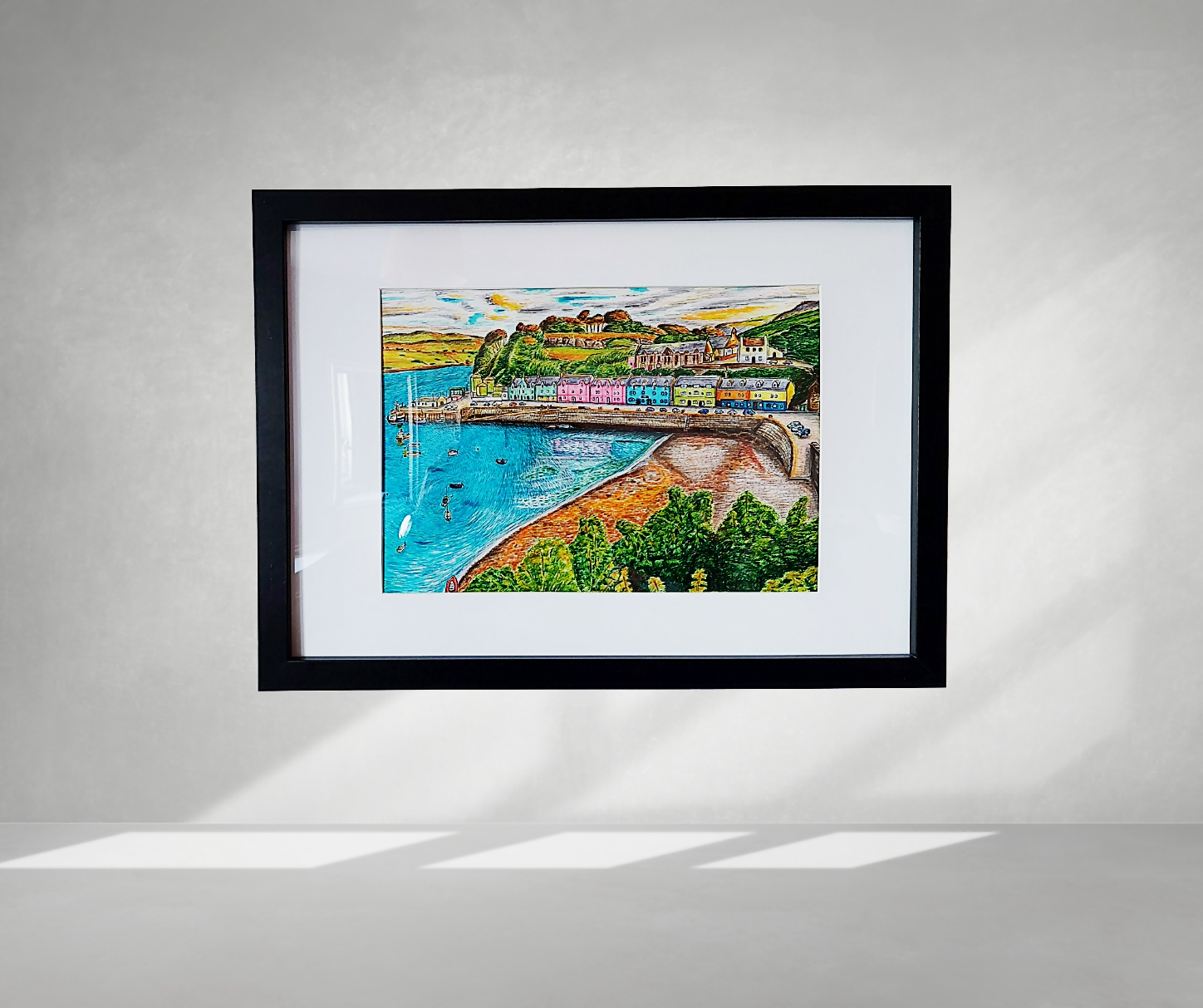 This original art is A3 in size and comes in a sleek modern Naples wood black A2 frame, mounted and ready to wall hang. A beautiful frame that compliments the array of colours used by Joe in completing this piece of Scottish art.