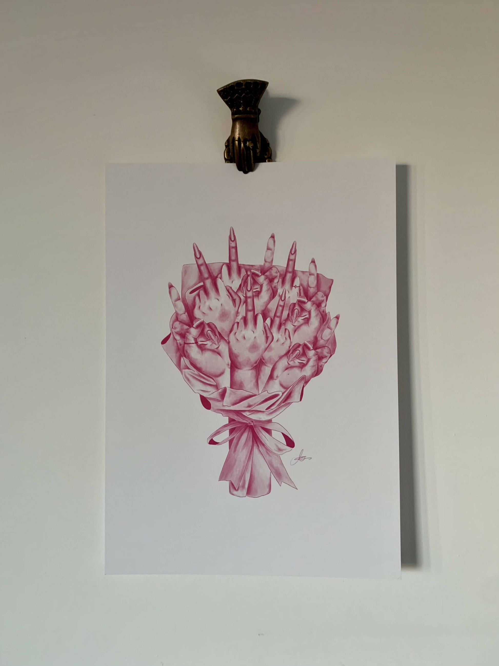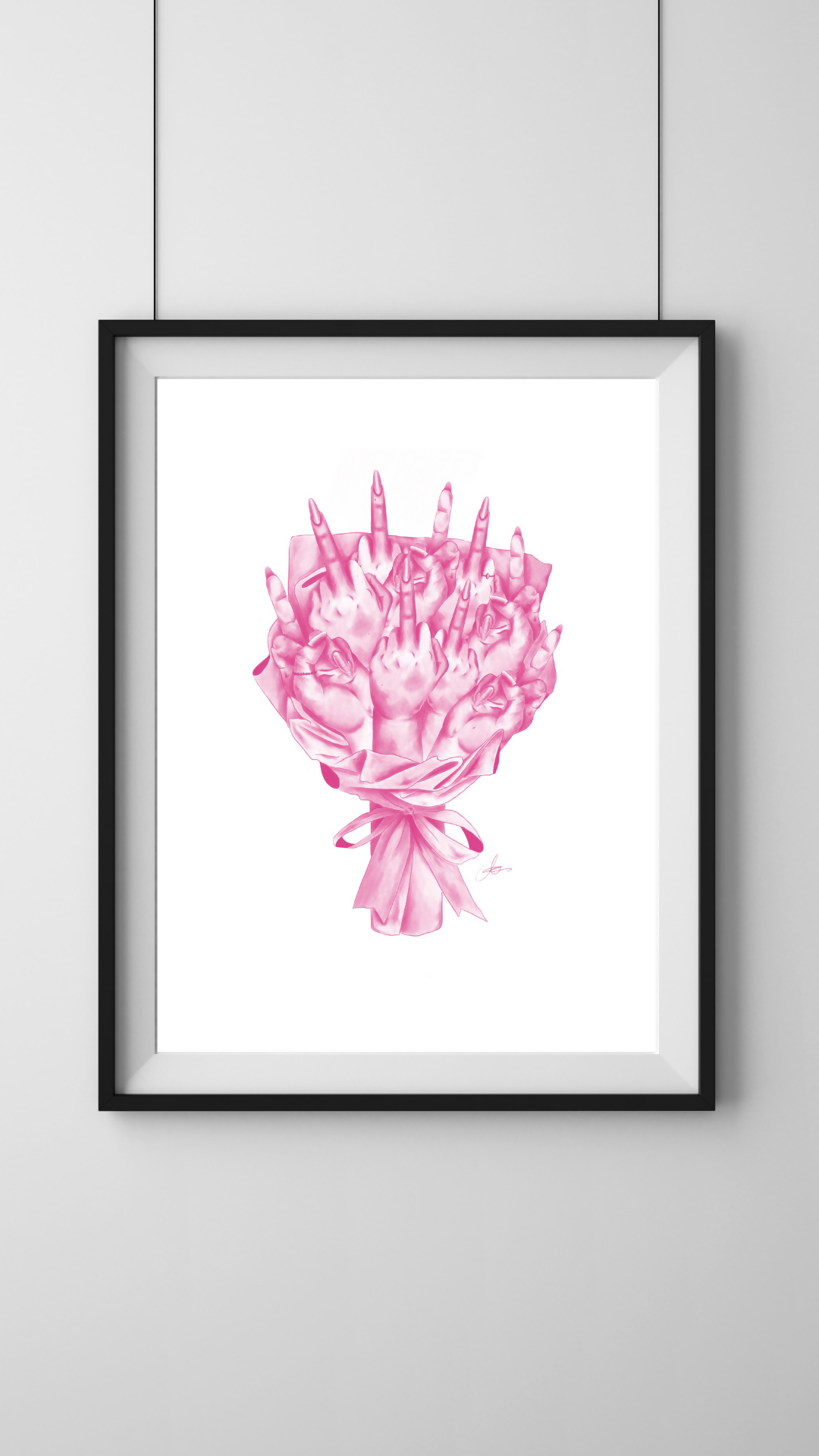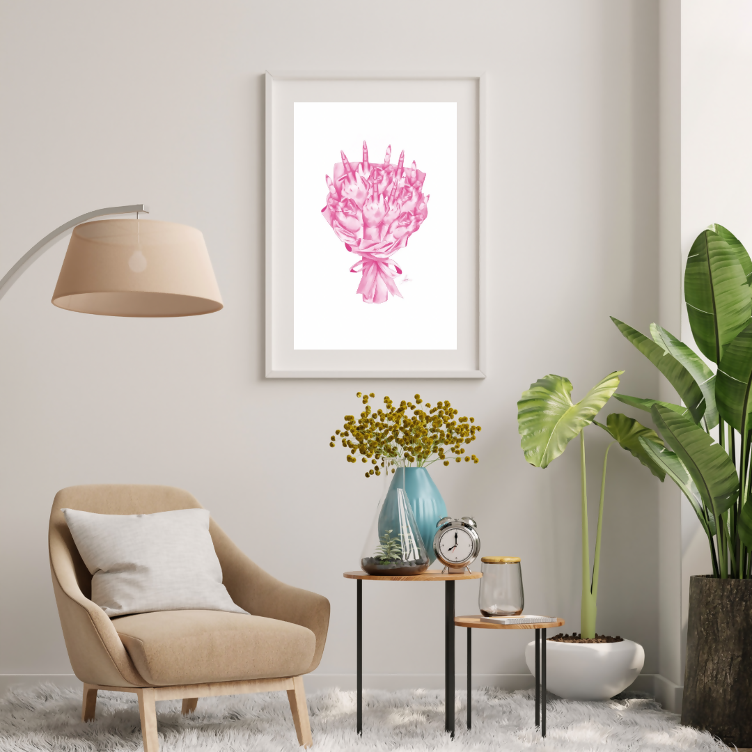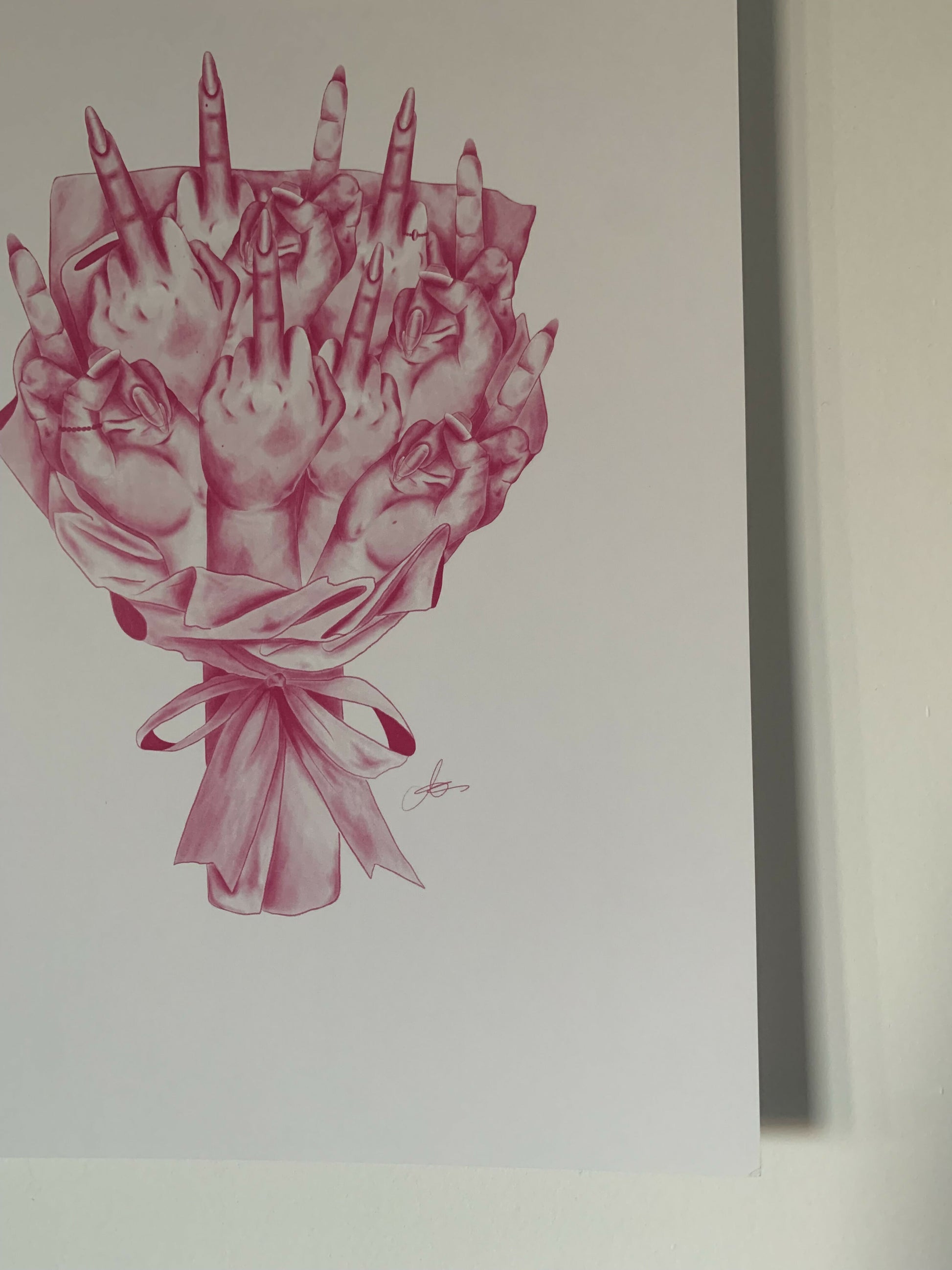A bouquet, but instead of flowers, middle fingers. And it’s pink!! A unique drawing for any room.