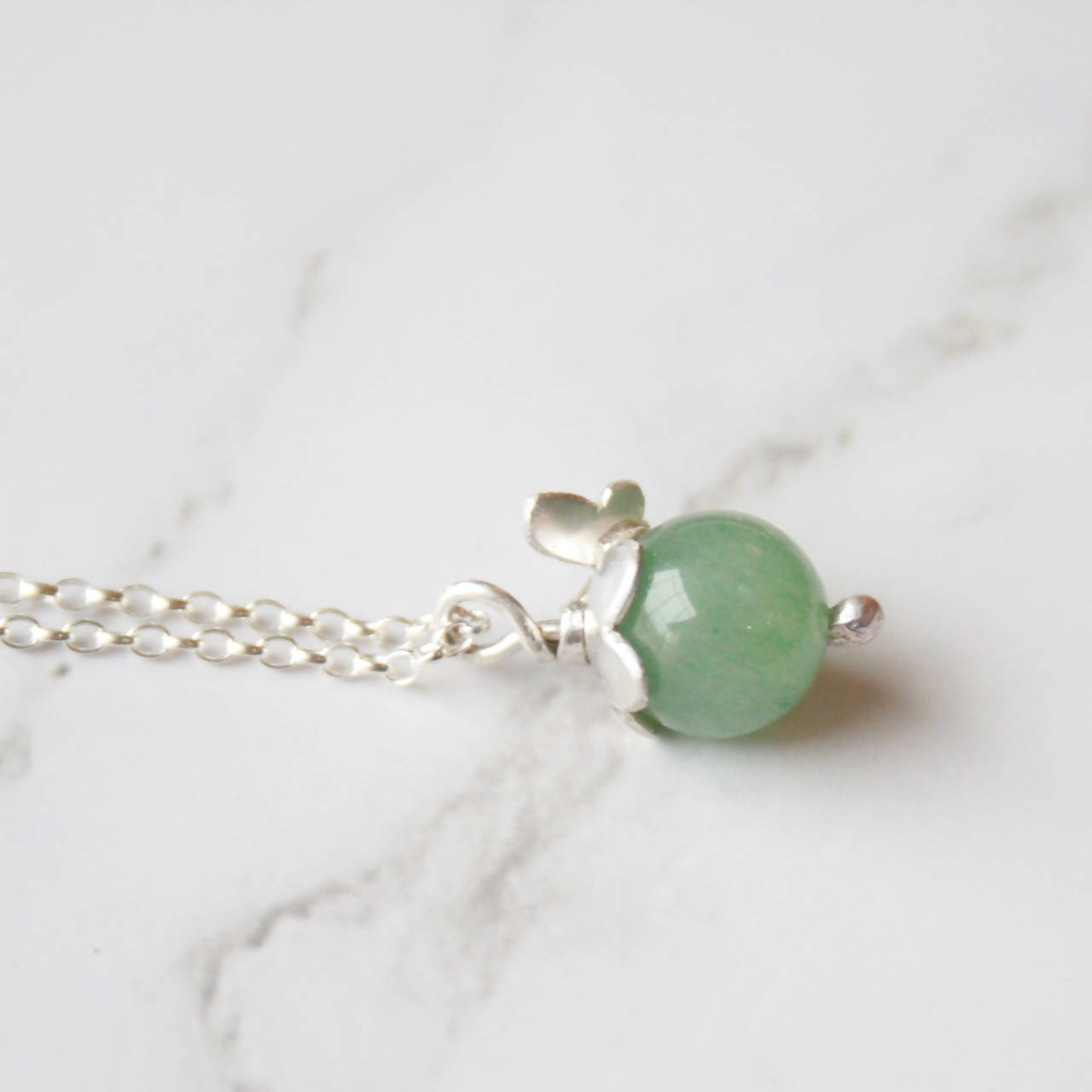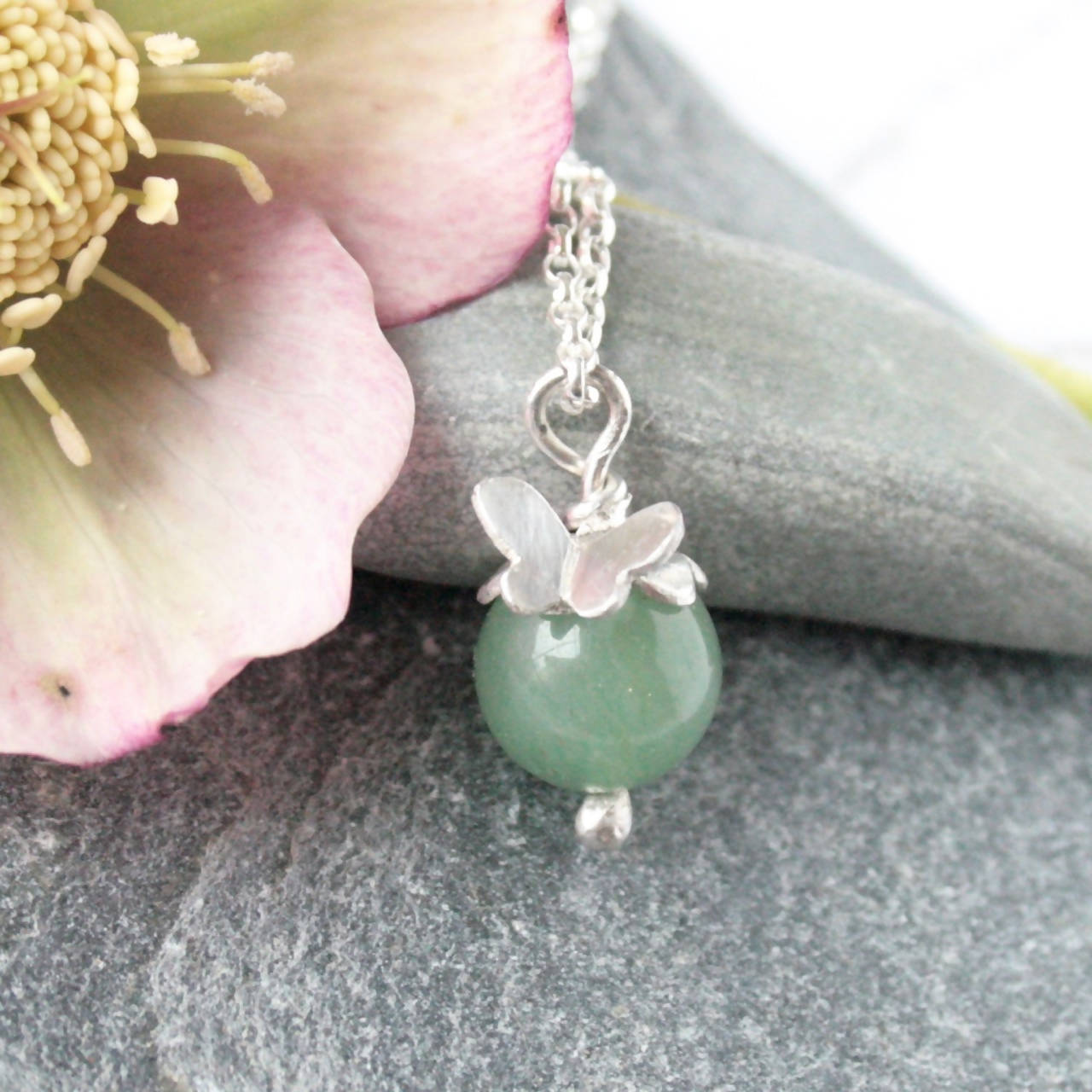 Aventurine and silver butterfly necklace
