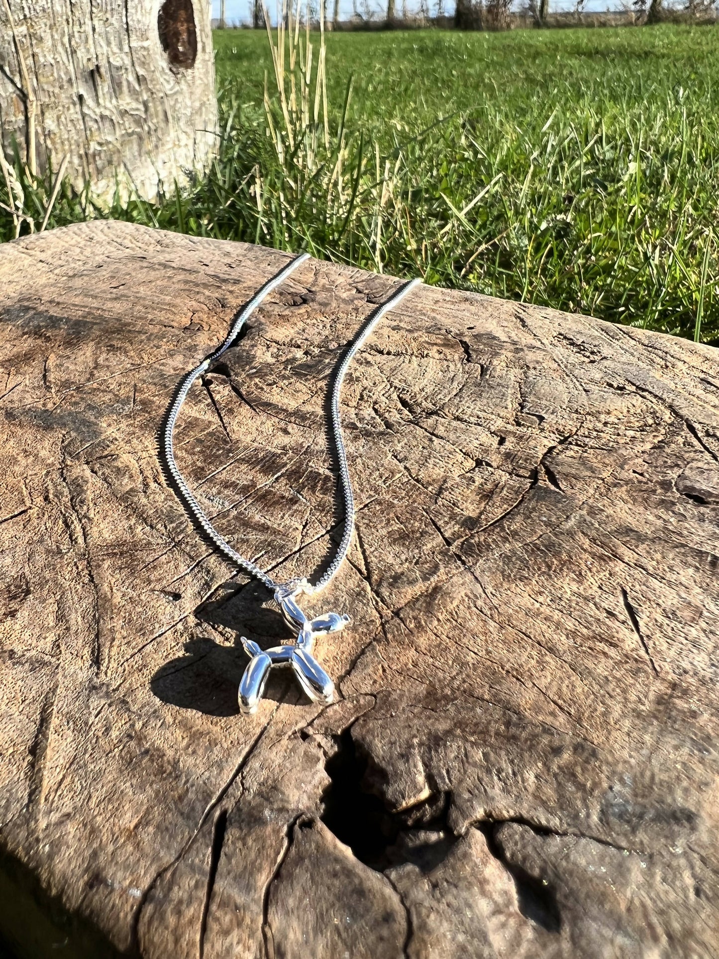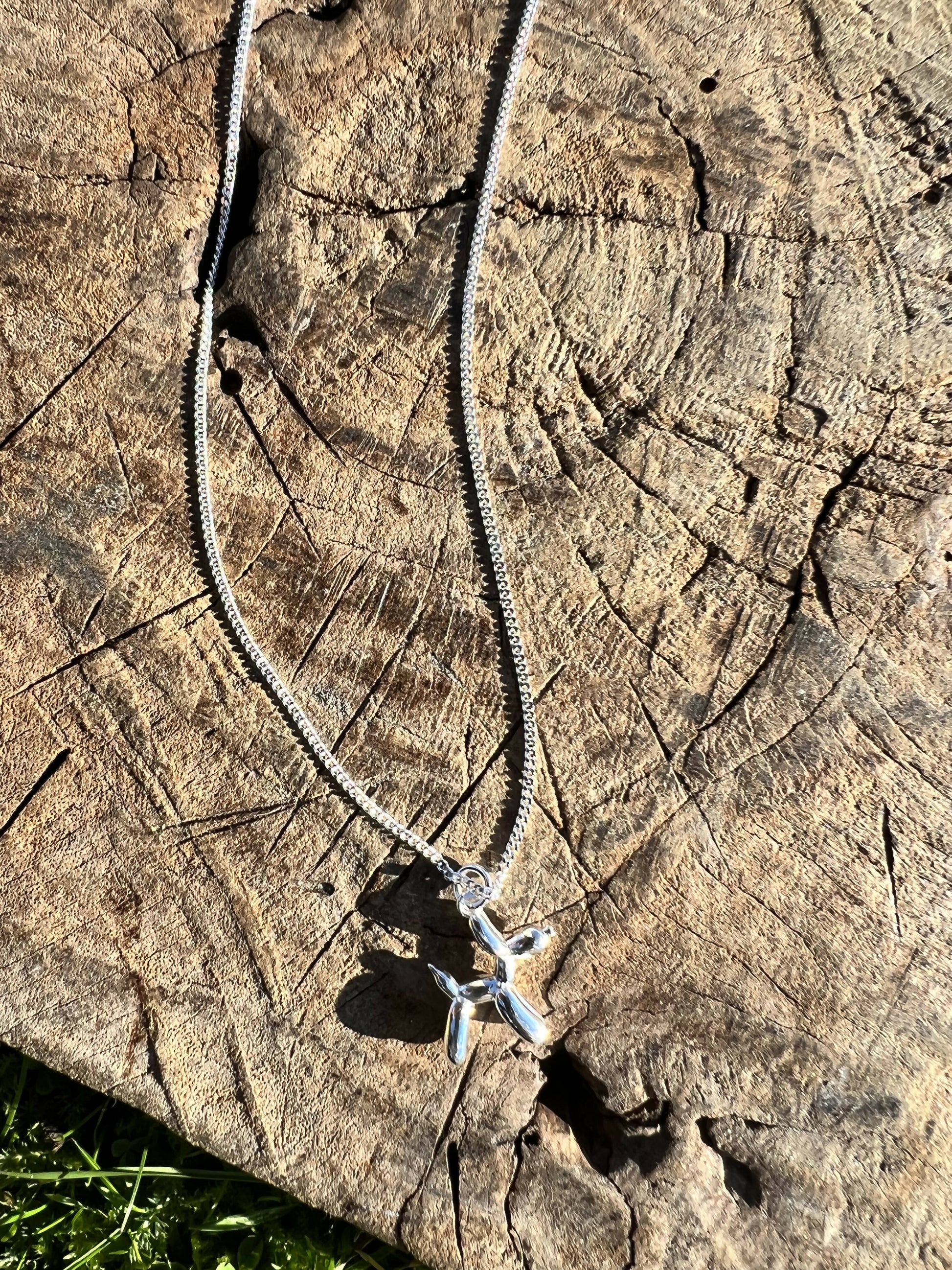 'Cedric The Sausage' Balloon Dog Pendant 925 Sterling Silver Necklace