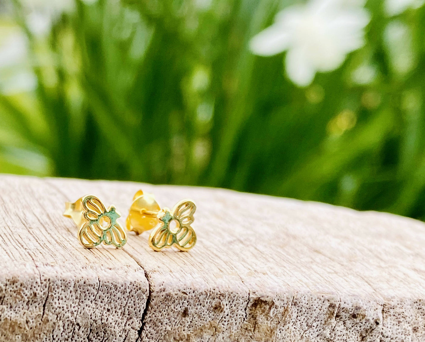 9ct Gold Plated Sterling Silver Cut-Out Bee Earrings