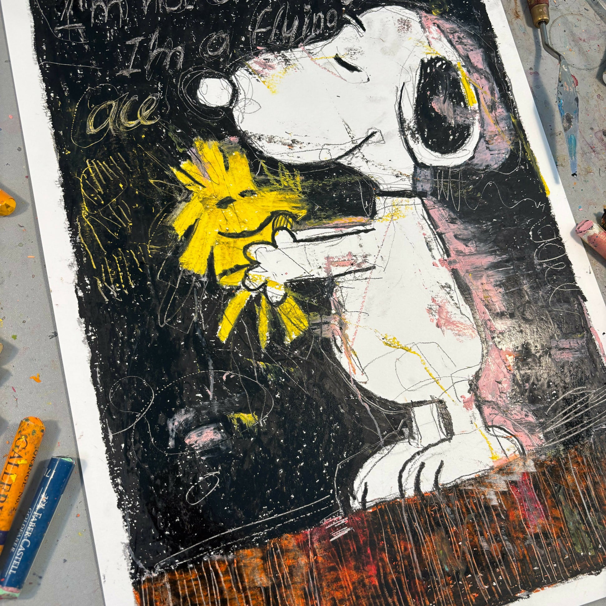 The original artwork was hand-painted with oil pastels, then scanned and printed on high-quality archival matt paper.