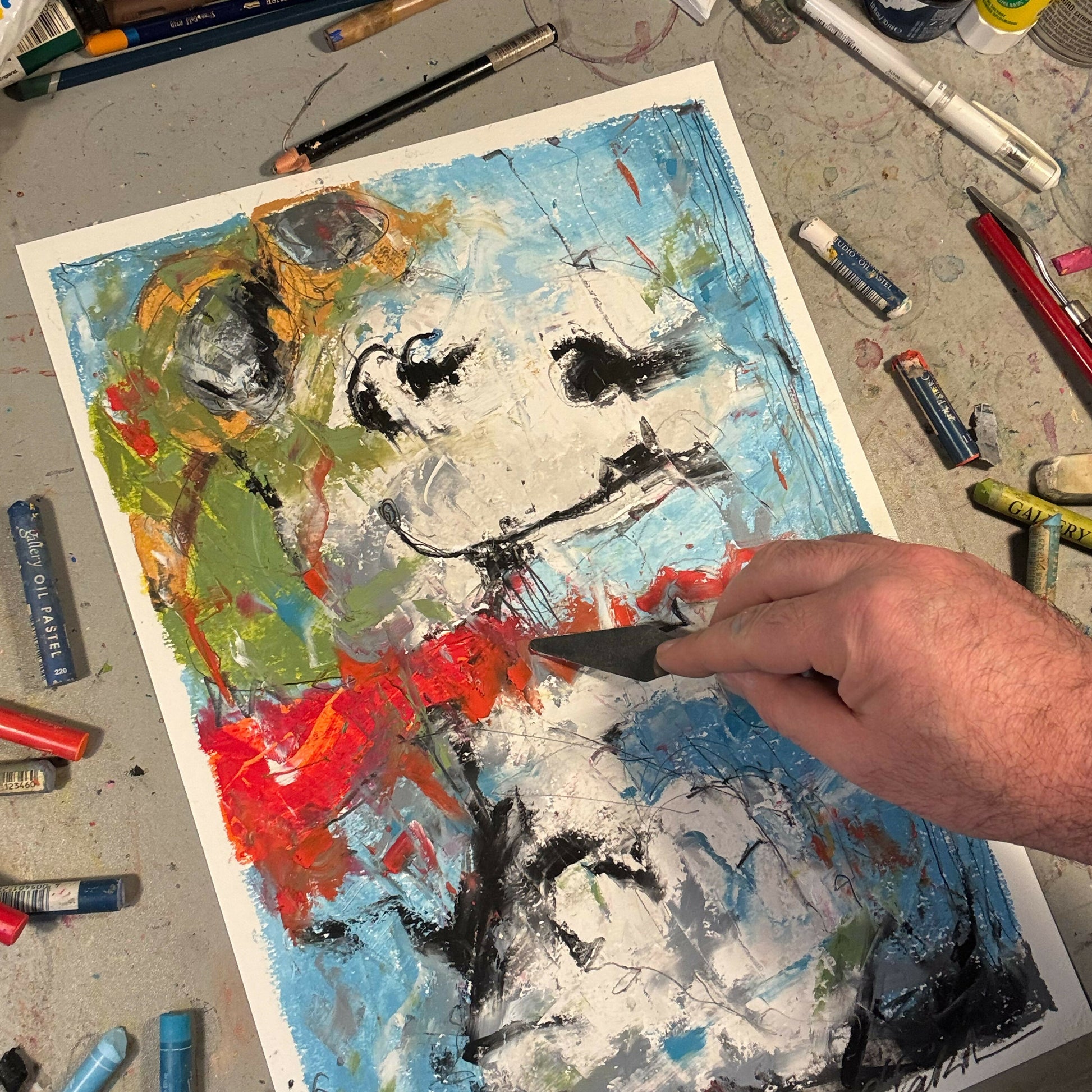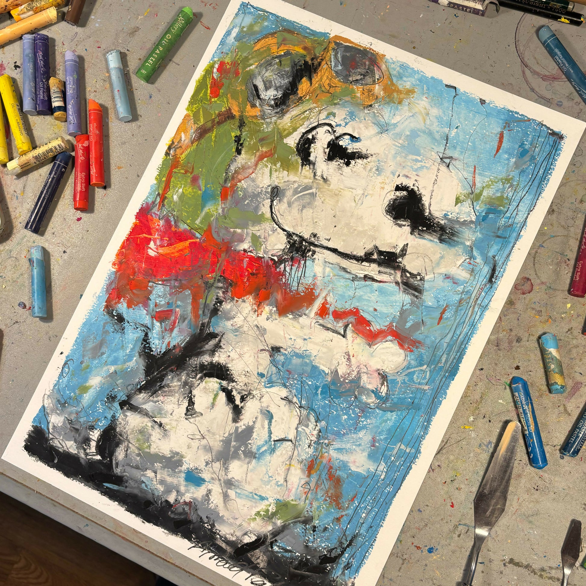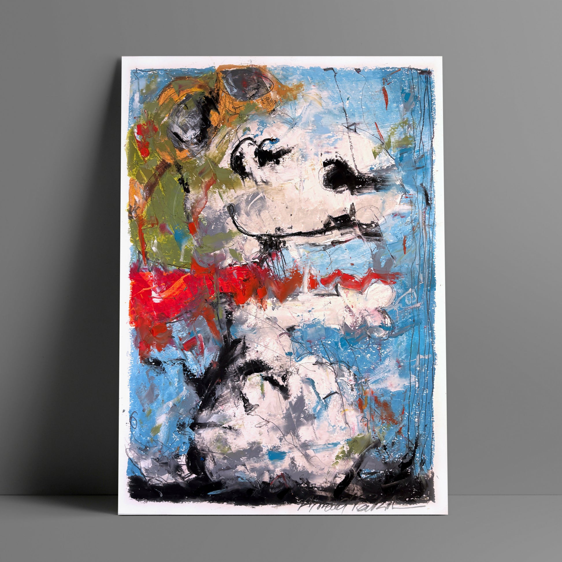 The original artwork was hand-painted with oil pastels, then scanned and printed on high-quality archival matt paper.