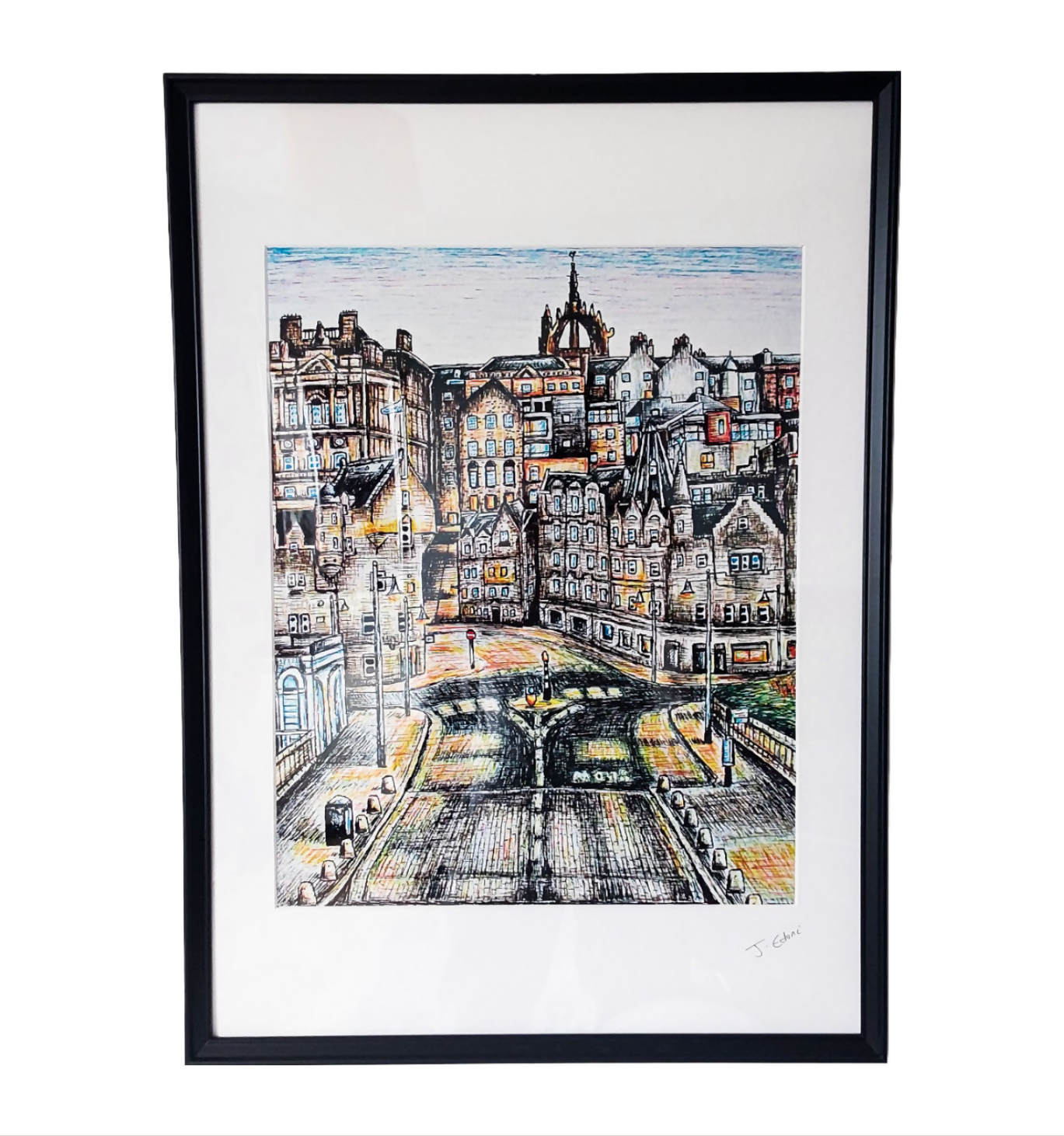 Framed Edinburgh Giclee Print- Old Town Waverley Bridge