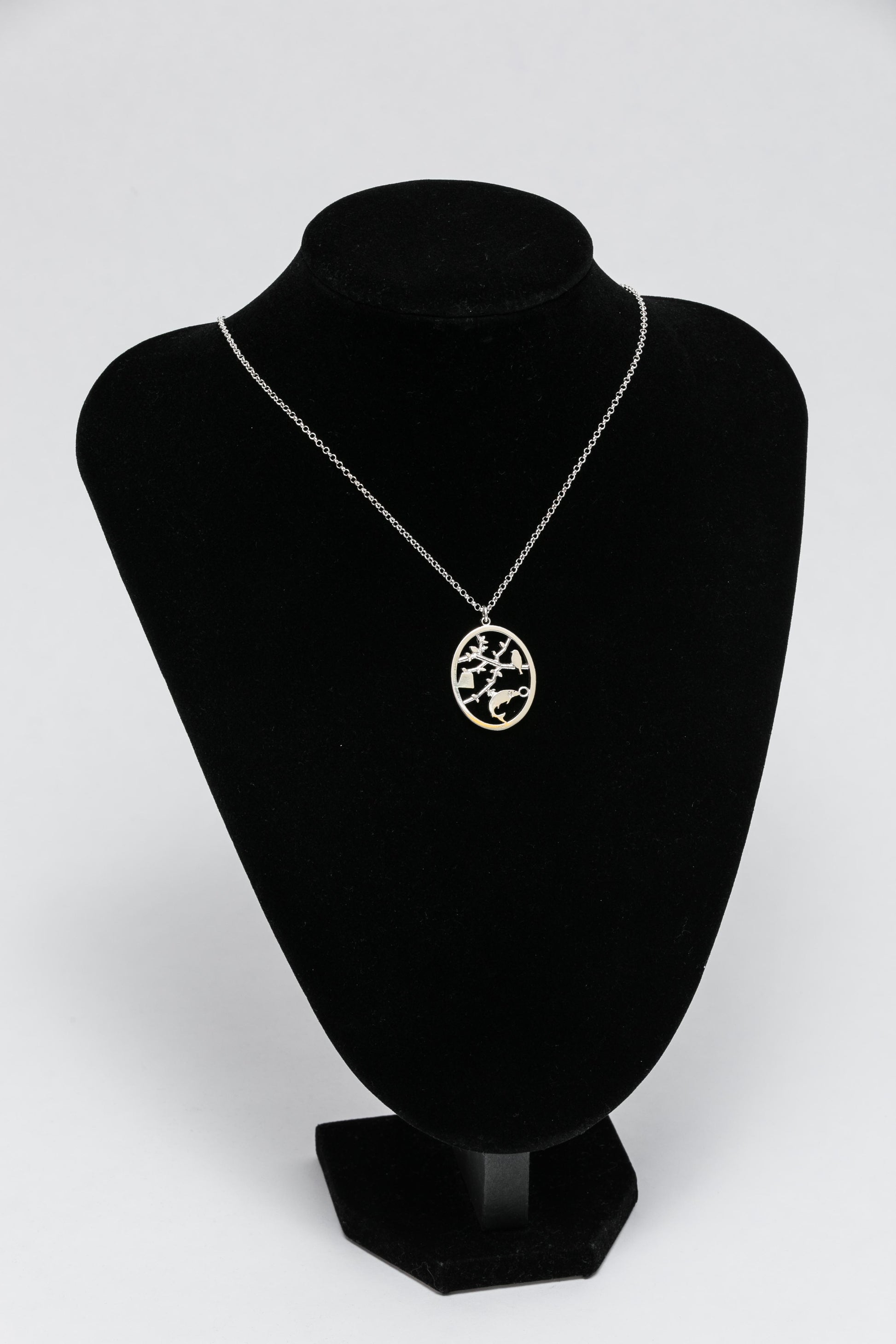 Designed an manufactured here in Glasgow and made in solid Sterling Silver. Available as a Pendant on an 18" Sterling Silver Belcher Chain or as a Brooch. Each piece is fully hallmarked.