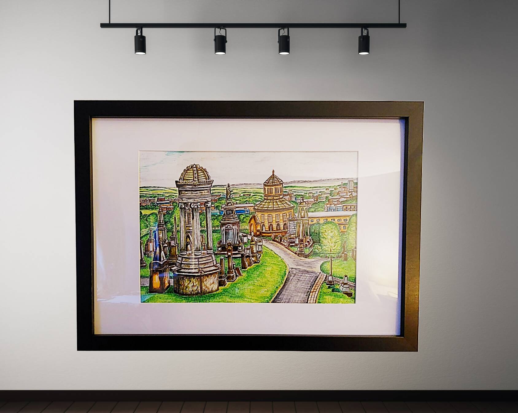 The artist applies his unique art style of detail and bold contrasting tones to bring this amazing location to life. All prints are produced in the Giclee style so are off the highest quality and do not fade over time.