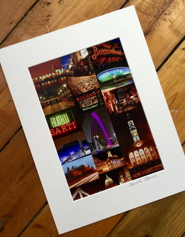 An original hand-signed mounted print of my Glasgow Nights collage image