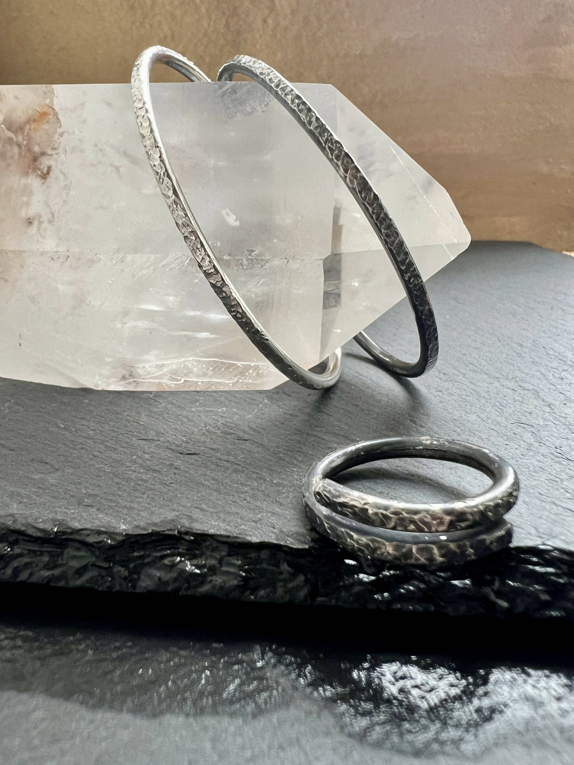Hammered men’s sterling silver bracelet. Hand made from 100% recycled sterling silver and oxidised.