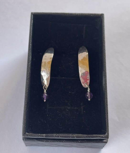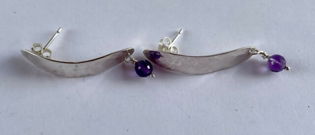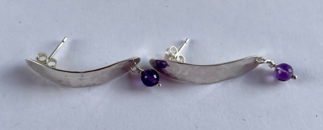 Handmade sterling silver and amethyst stud earrings