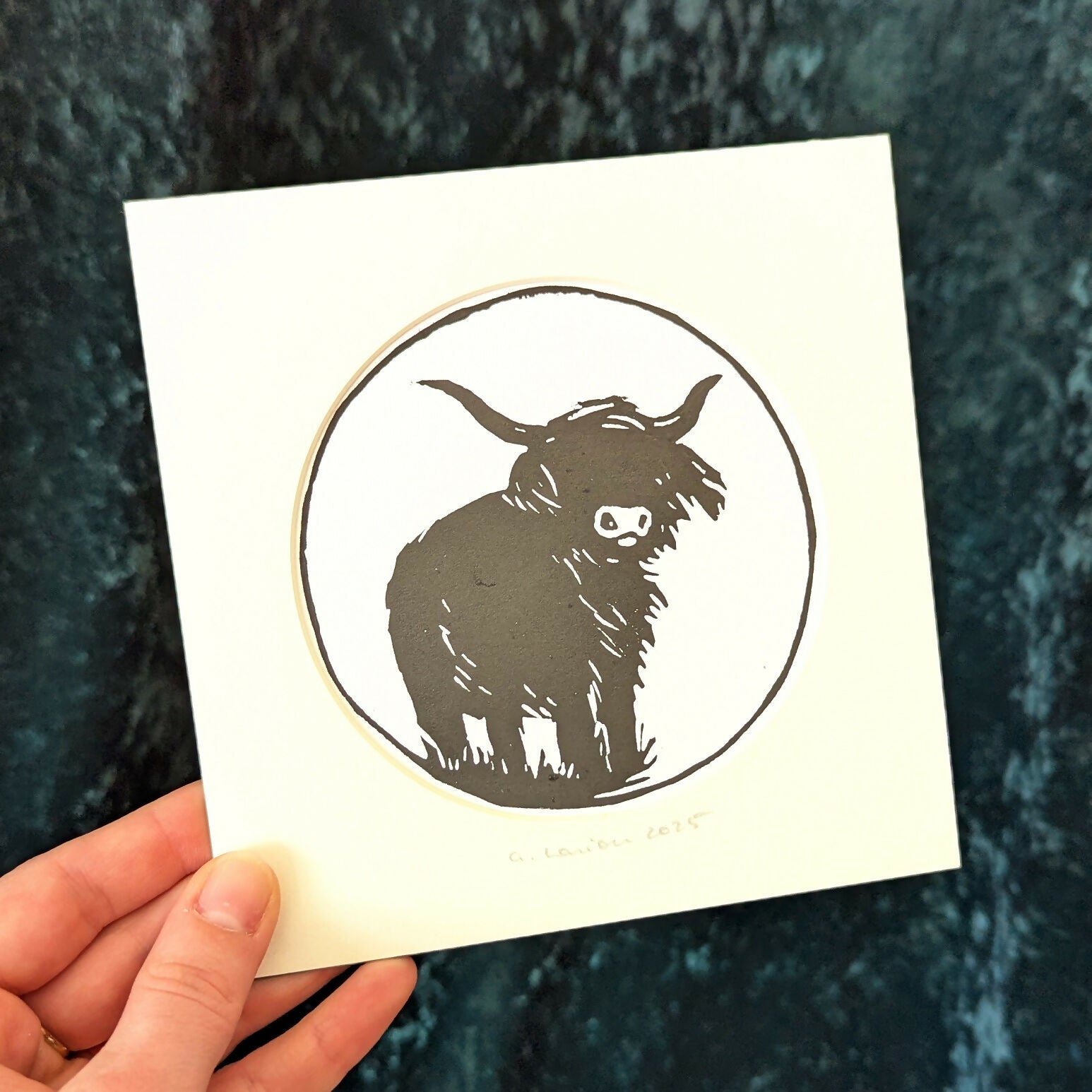 Highland Cow Linocut Print
