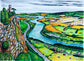 The artist has implemented his unique style of fine detail and vibrant bold tones, capturing the characteristics and charm of this iconic spot.