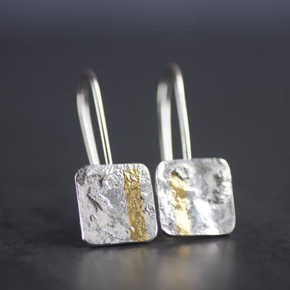 LINEAR Oxidised Silver & Gold Keum Boo Square Drop Earrings