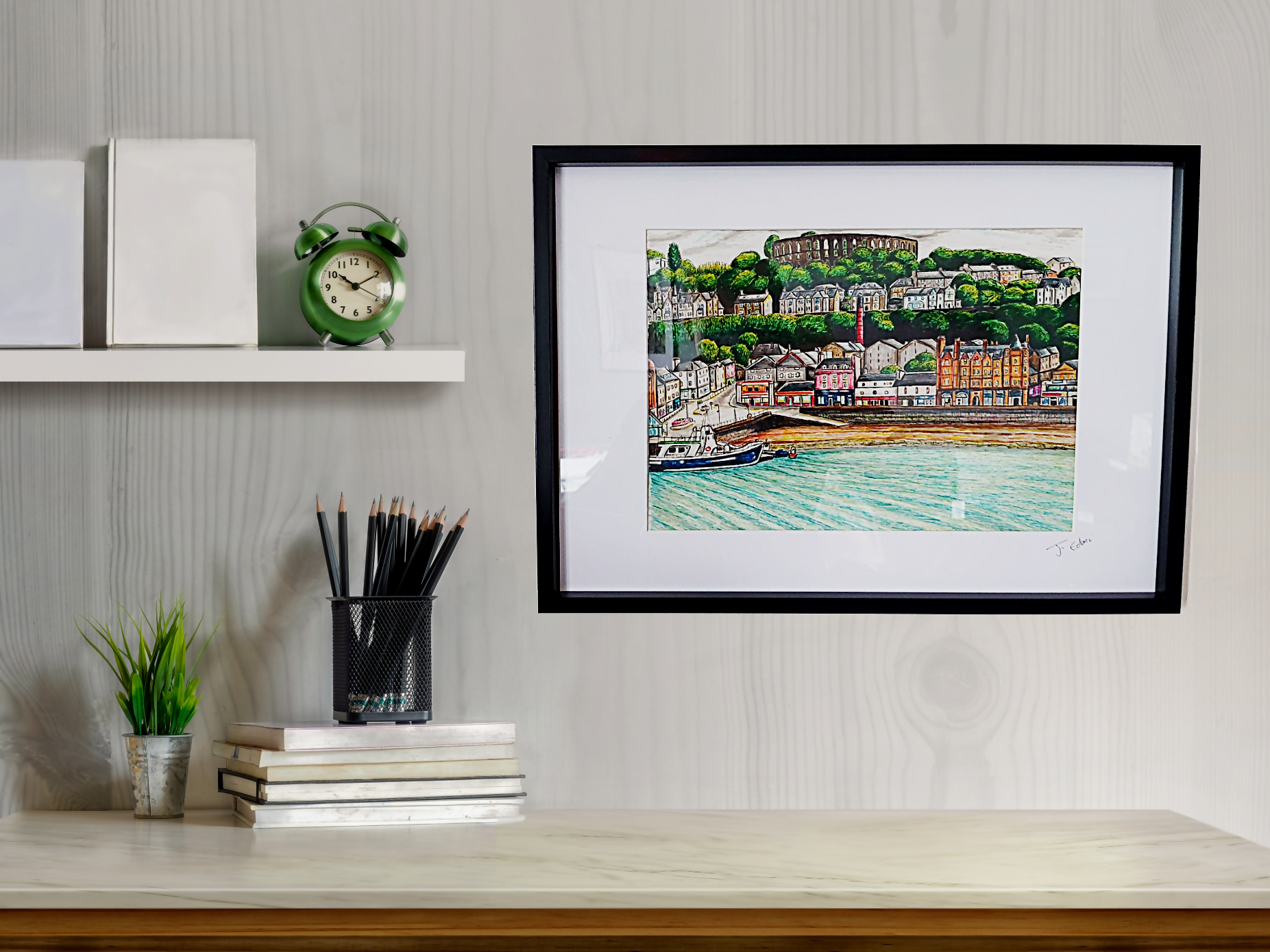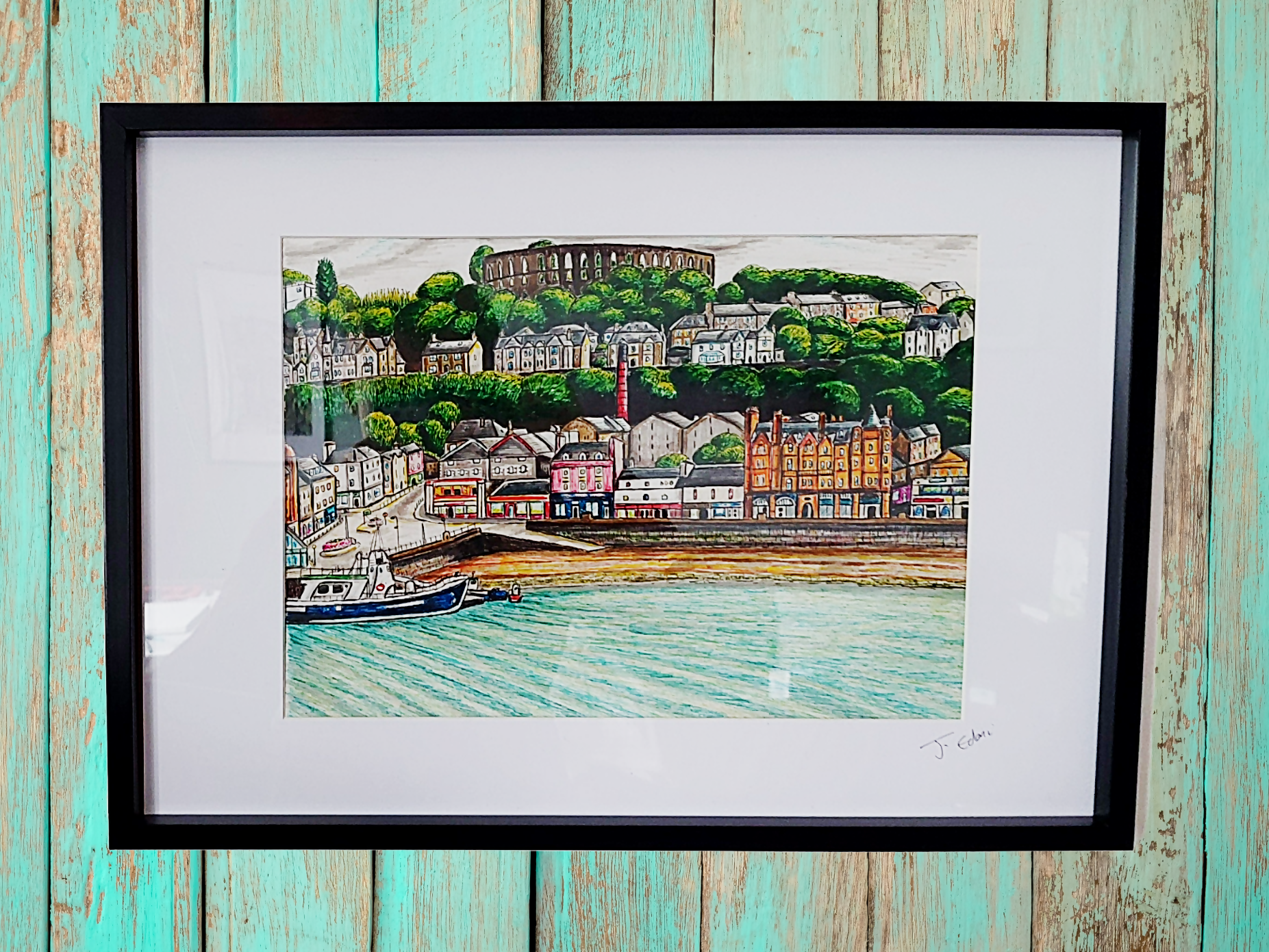 Artist Joe Edoni uses his exciting art flair, combining bold tones with fine detail to recreate your favourite spots across Scotland. Joe has captured this amazing locations charm from the waterfront, capturing the unique characteristics of this seaside town.