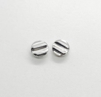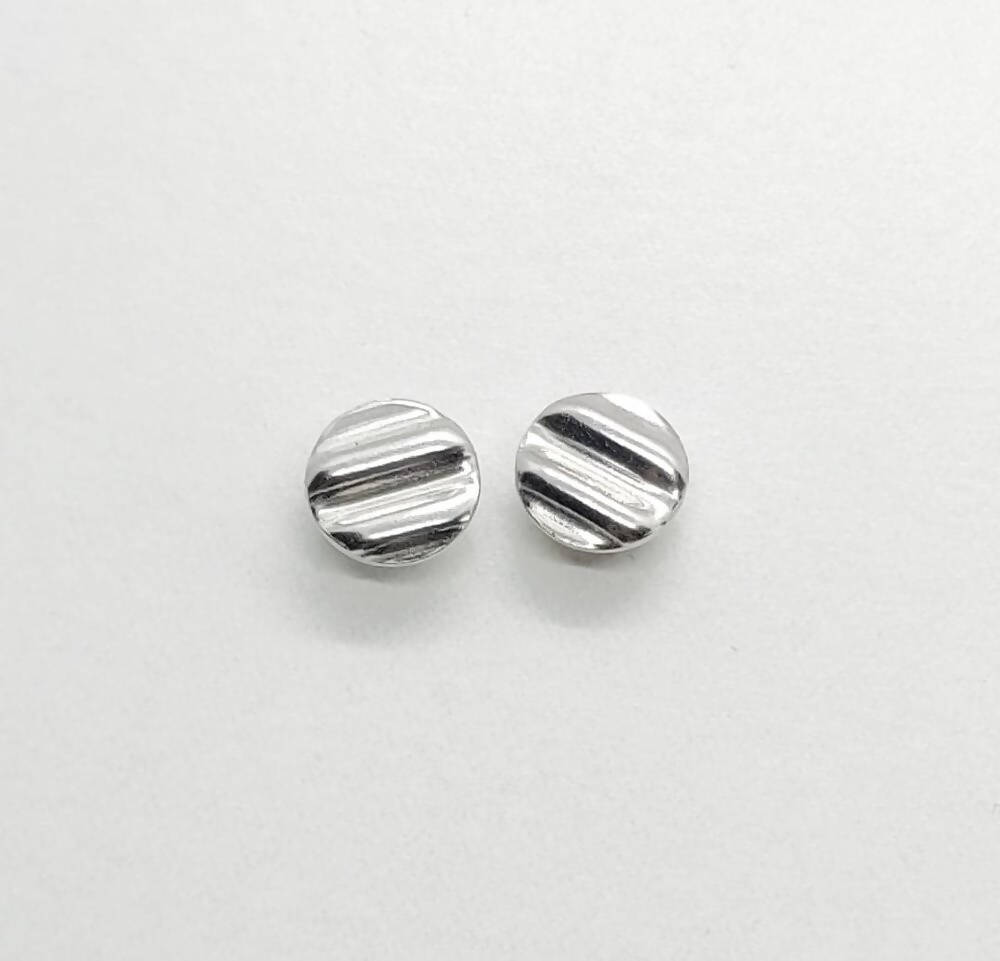 Sterling silver corrugated stud earrings. Matching pair, both corrugated circles.