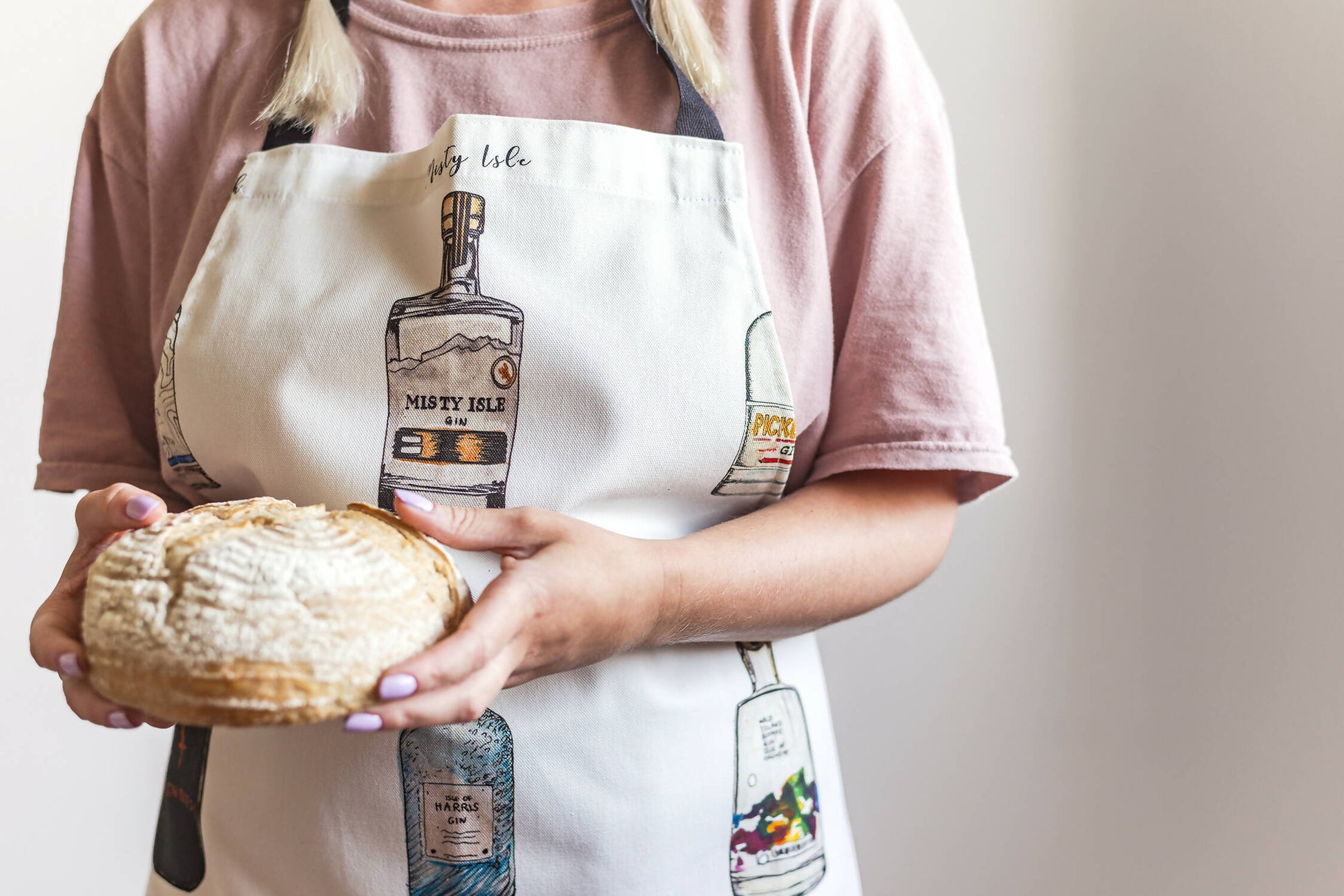 A gorgeous cotton apron featuring several Scottish gins, some well known brands and some of your smaller craft gin brands - perfect as a gift alongside the recipient's favourite bottle of gin