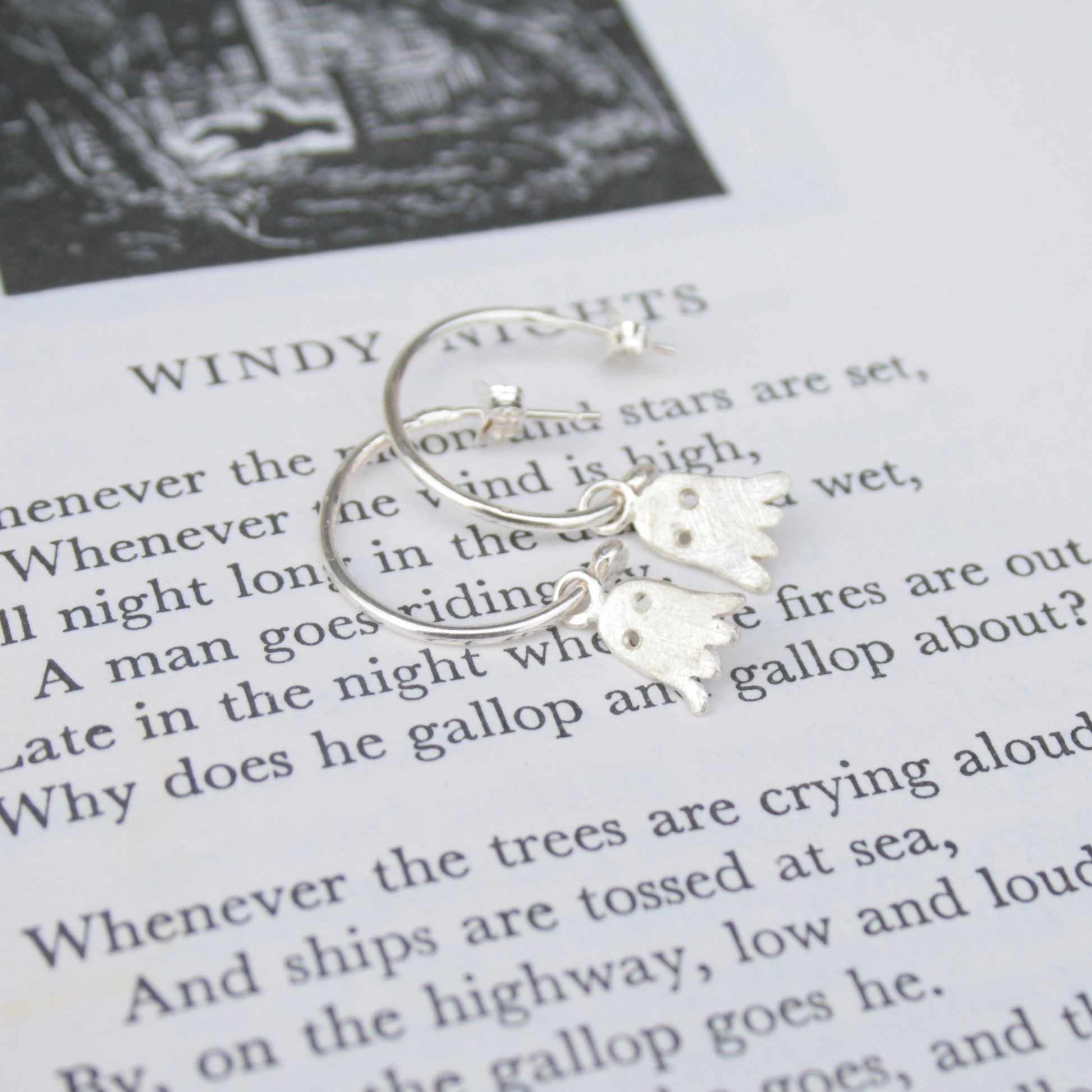 The earrings will be delivered gift wrapped in a Thistledown Wishes gift box which will also keep the ghosts safe when the hoops are being worn without them.