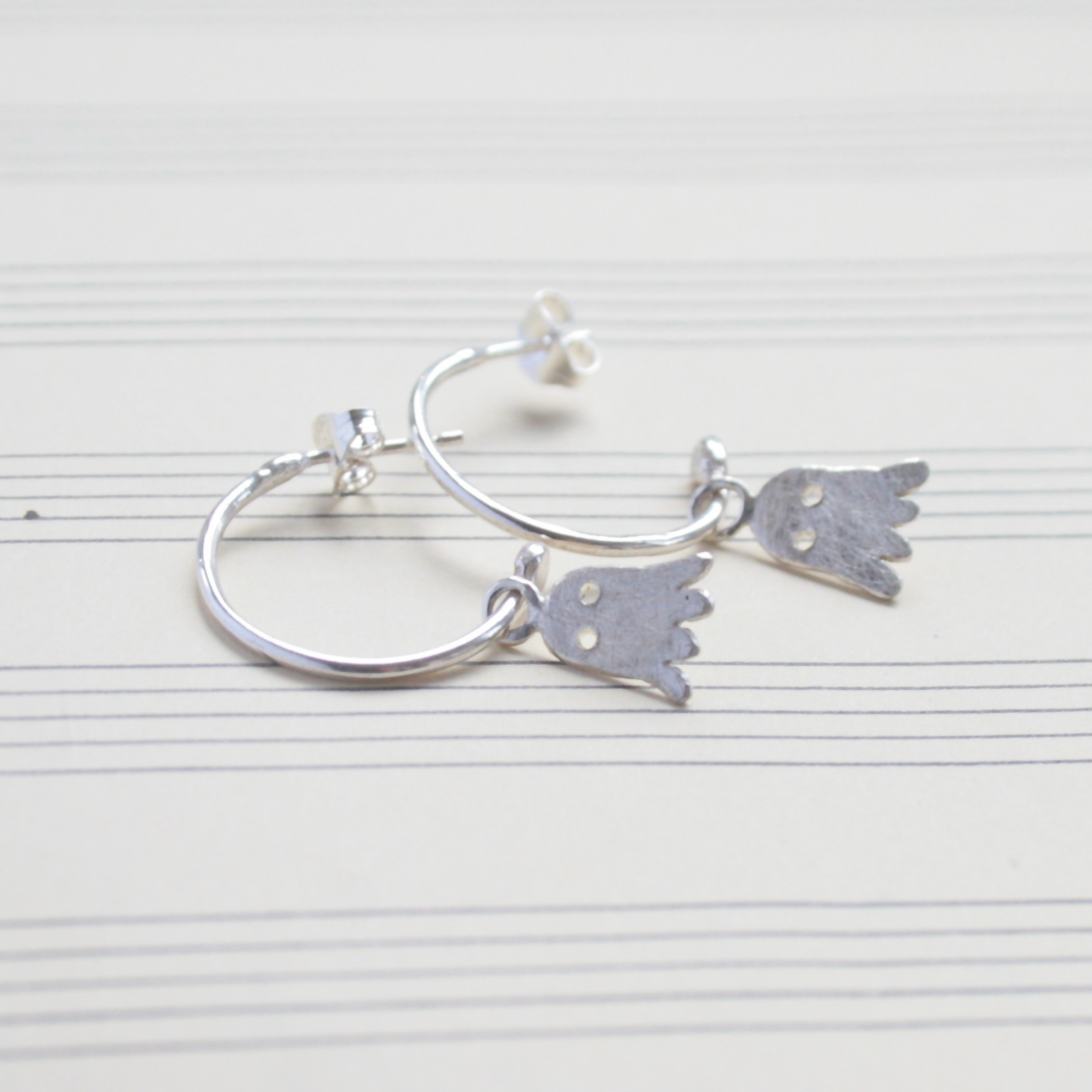 Silver ghost hoop earrings