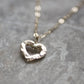 Easy to wear, dainty & delicate, solid 9ct gold hammered frame heart pendant necklace. Made by melting down solid recycled 9ct gold in the workshop & re-working it to create an individual, hand-hammered organic shaped heart. Edges & back are polished to a shine.