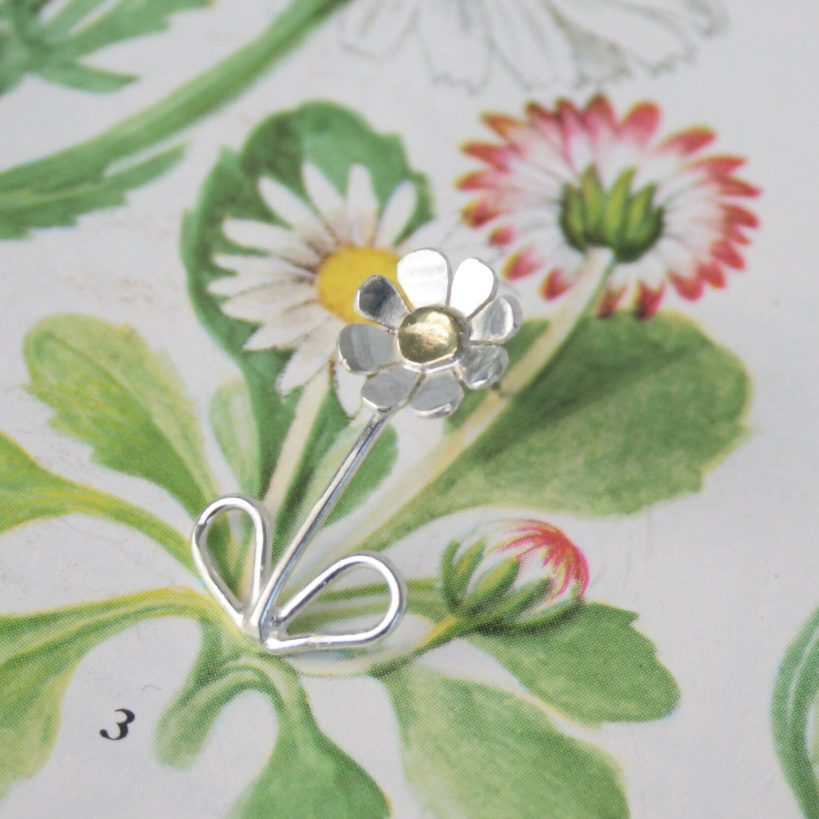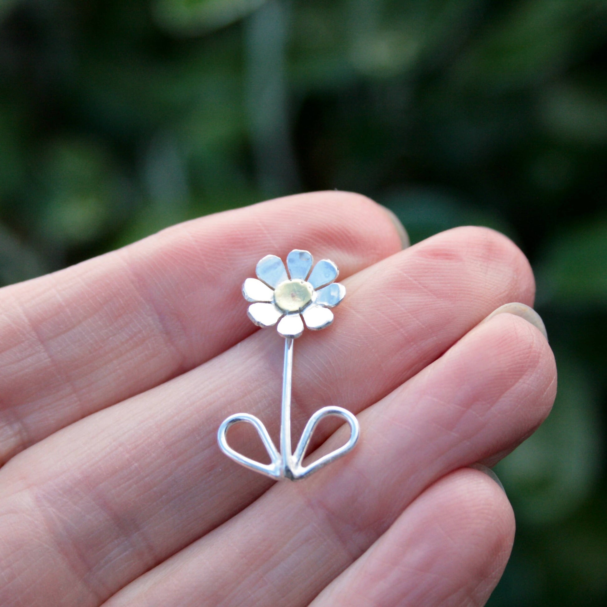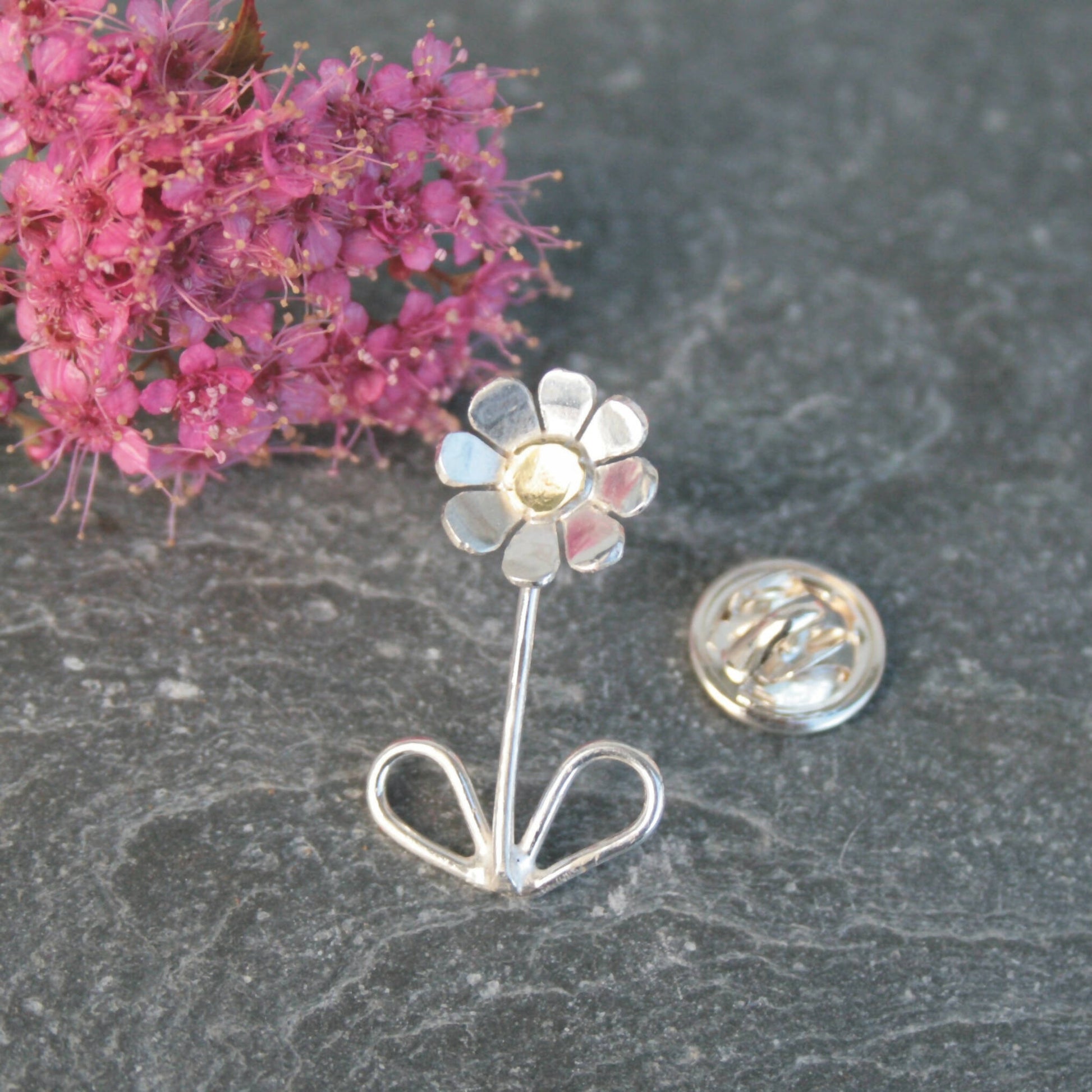 I have handmade it from recycled sterling silver and the very centre of the flower is created from brass.