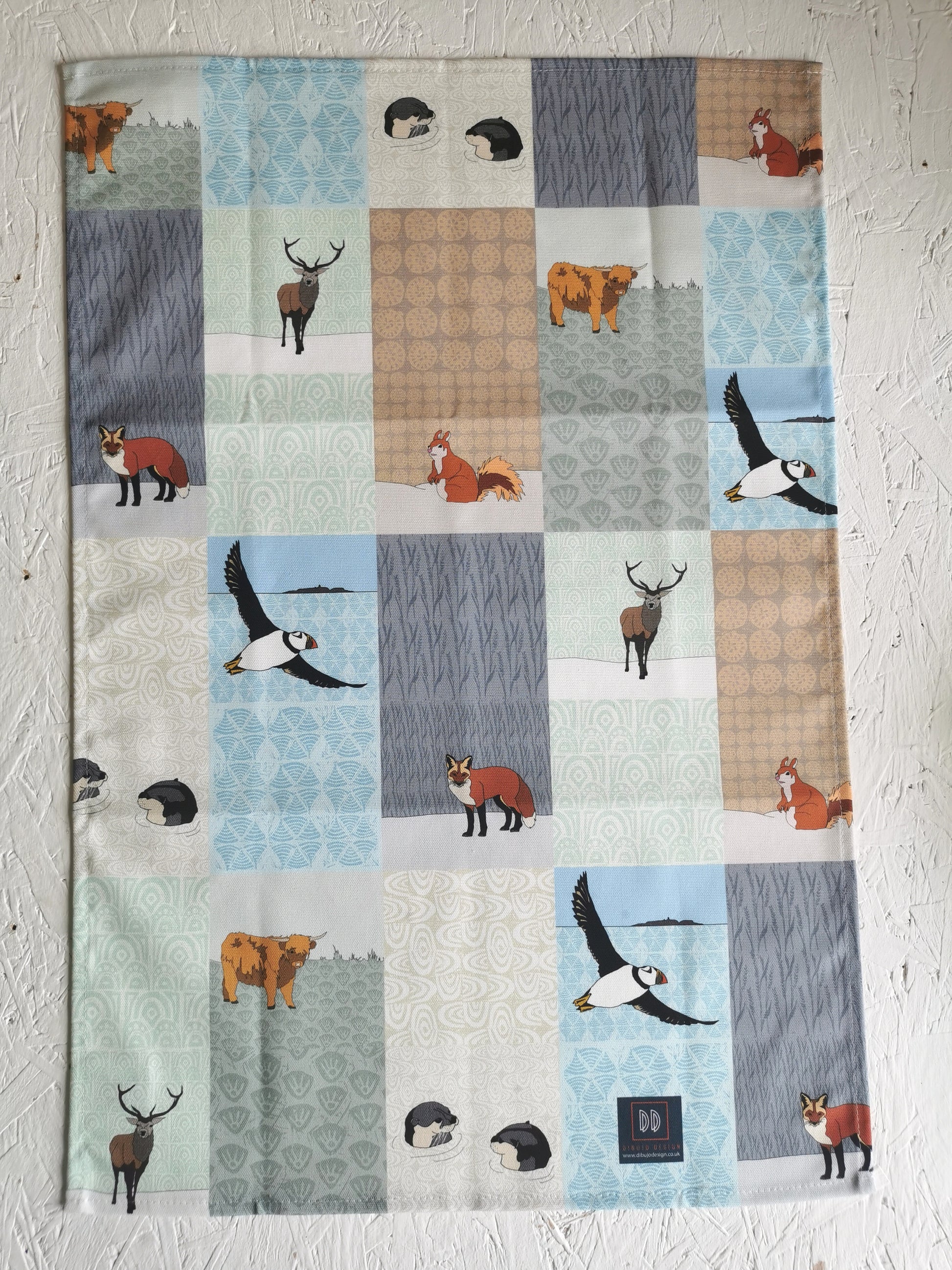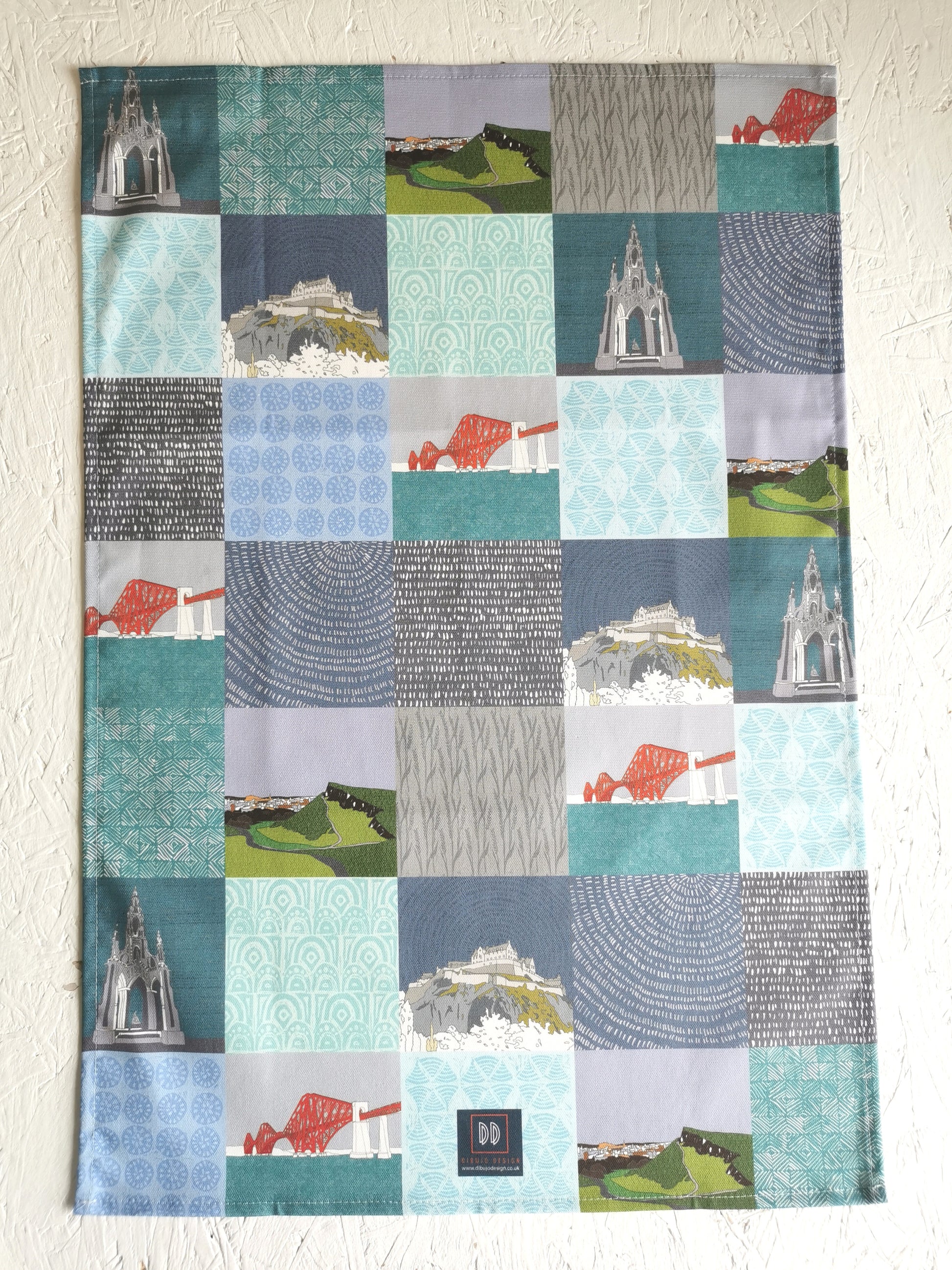Cotton tea towels with a hanging loop. Fantastic colours and each tea towel features a multitude of Dibujo Designs artwork.