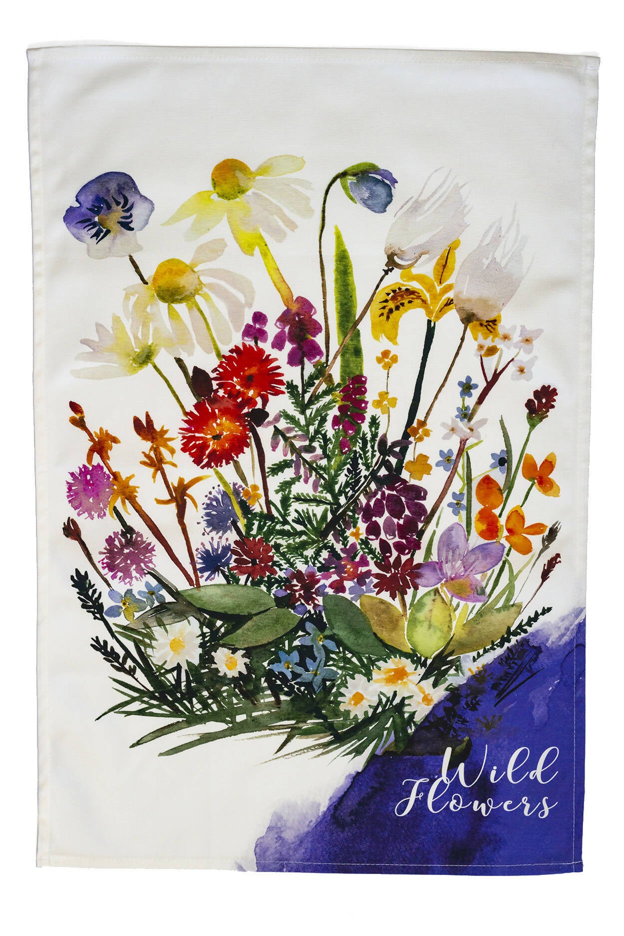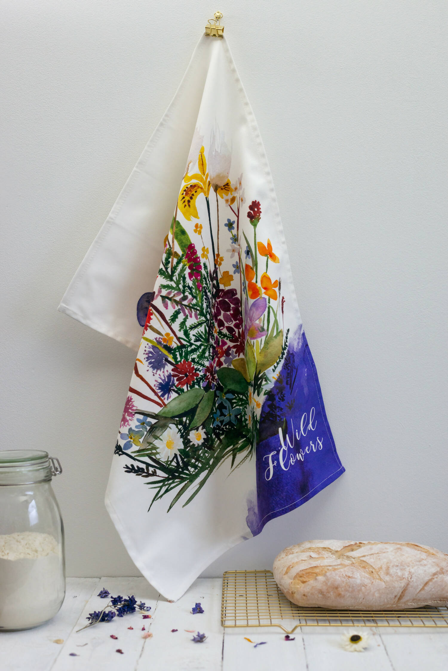 Luxurious cotton tea towel tastefully adorned with a coastal wildflower bouquet